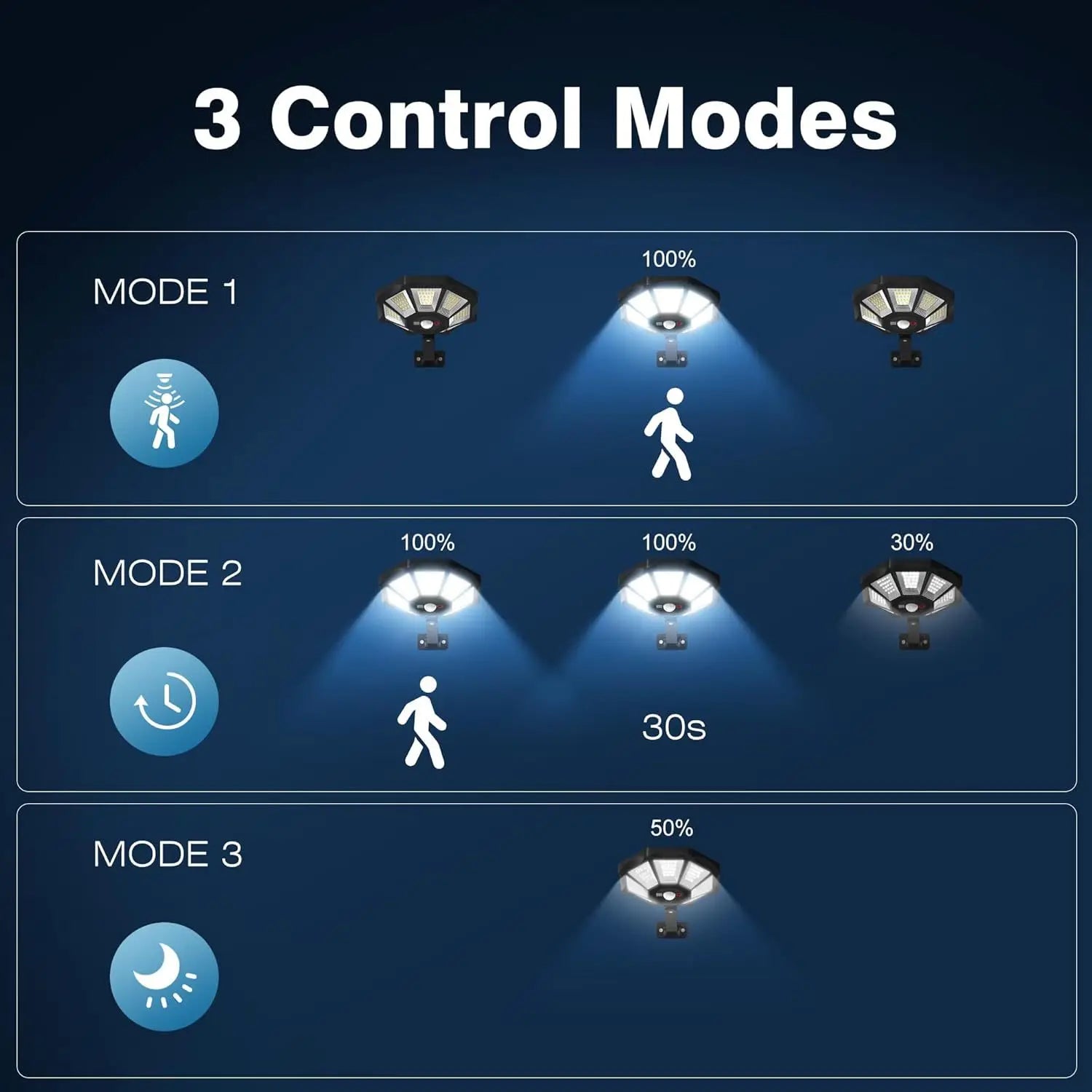 Upgraded Octagonal Solar Outdoor Light: The upgraded solar lights for outside adopts unique octagonal design, equipped with 168pcs super LED beads, without any lighting blind area, providing you with the best lighting.