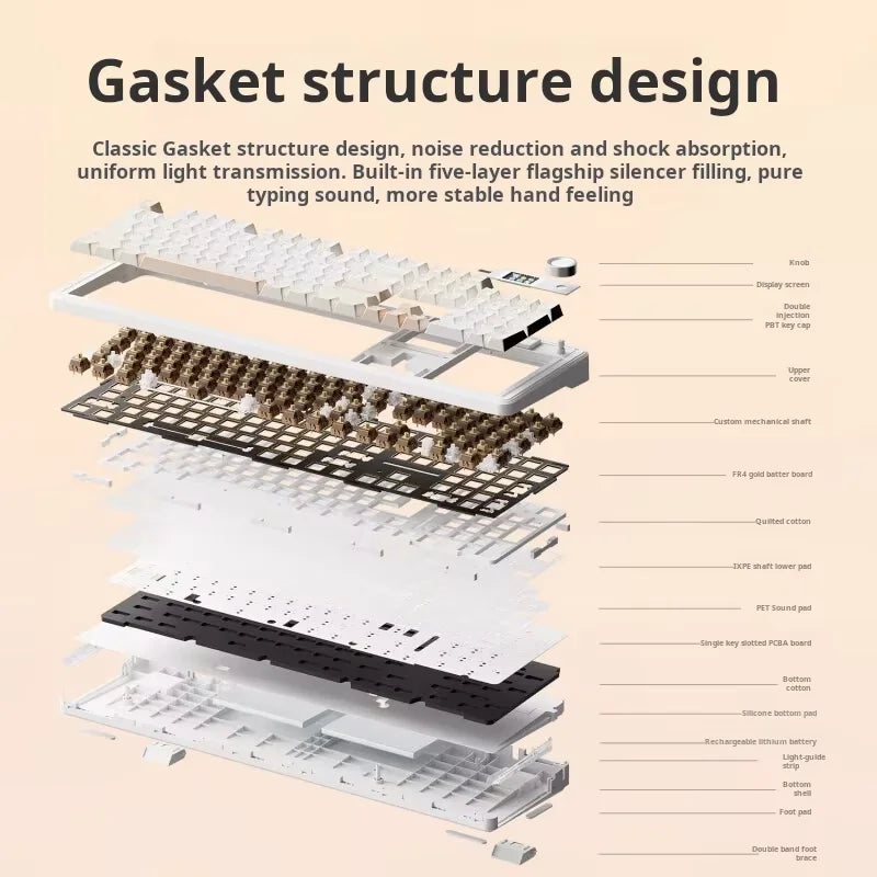 AULA F108 Pro Mechanical Keyboard Three-mode Bluetooth /2.4G/ Wired Customized Full-key Hot-swapable Gasket Structure RGB Light