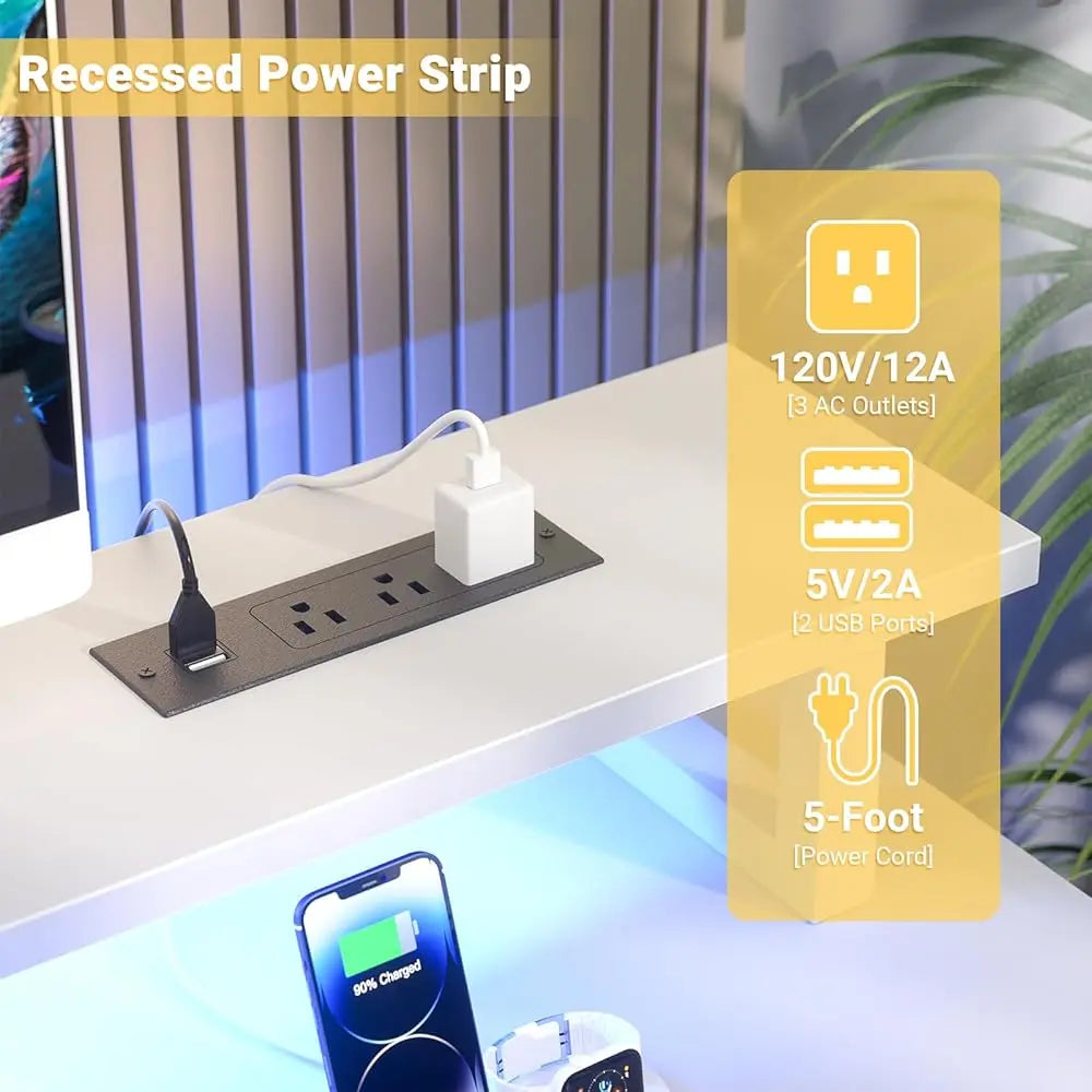 【𝐂𝐡𝐚𝐫𝐠𝐢𝐧𝐠 𝐒𝐭𝐚𝐭𝐢𝐨𝐧 𝐨𝐧 𝐌𝐨𝐧𝐢𝐭𝐨𝐫 𝐒𝐭𝐚𝐧𝐝】The Computer Desk Ludes A Built-In Power St With 3 Outlets & 2 Usb Ports, Which Provides Convenience For Charging Your Phone, Gaming Gear, Tablet, Or Other Office Devices. With A Ergonomical Design, The Monitor Stands Help To Elevate Your Eye Lines, Avoiding Ne And Ba Pains. Super Considerate Writing Desk.