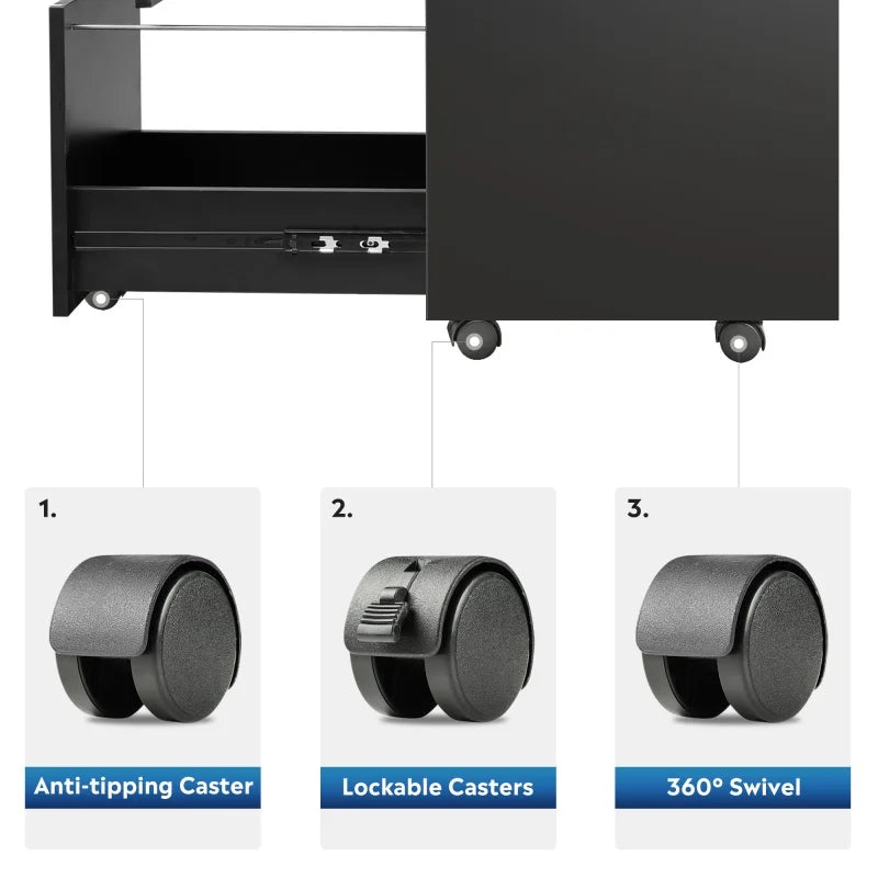 4.Stable Mobility with 5 Casters:Move your cabinet effortlessly thanks to five durable caster wheels. The two front wheels lock for stability when needed, and the center caster prevents tipping when drawers are fully extended. Whether on hardwood or carpet, this cabinet glides easily and stays secure in place.