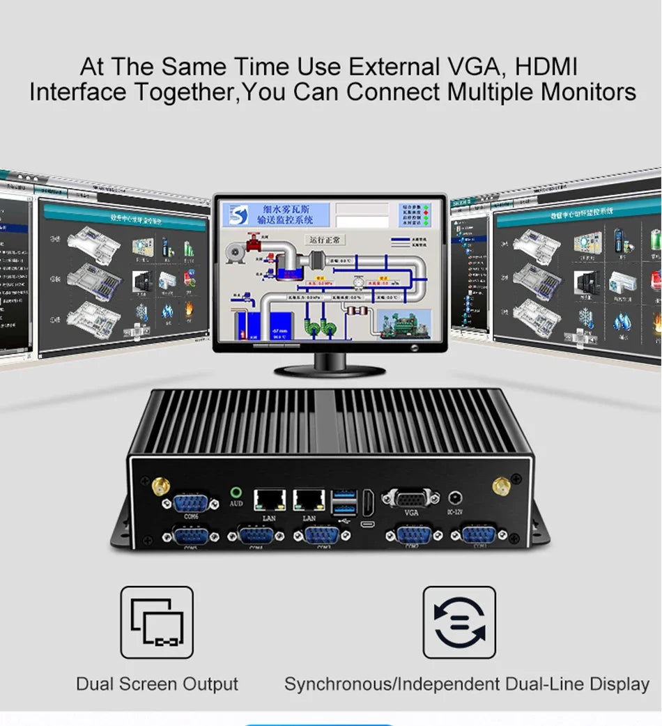 Mini Industrial PC Fanless Dual LAN 6*COM 4G LTE Core i5 4200U i7 4500U J1900 HD WiFi 6*RS232 RS485 Windows 11 Linux Computer