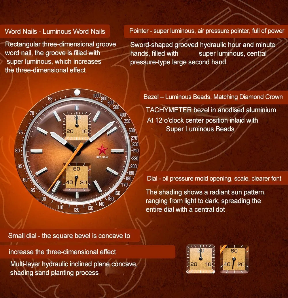 RED STAR 42mm Bull Head with Seagull Movement 1963 Chronograph Mechanical st1901 Watch Military Luminous Men Wristwatches Goose
